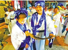 来自新疆的小朋友在象山影视城,饶有兴趣地体验拍摄微电影