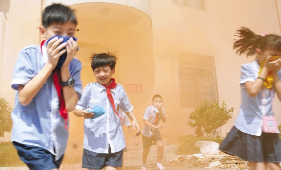 8月29日,温州市石坦巷小学第一课首学消防安全知识,学生们还体验了火场逃生自救和各类消防装备的使用操作。 余根铃 摄