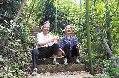 章礼金和老伴在上山途中小憩。谭孝军 摄