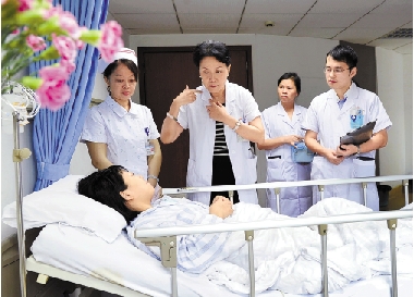 侯凡凡院士(后排左二)在查房过程中和病人交流。