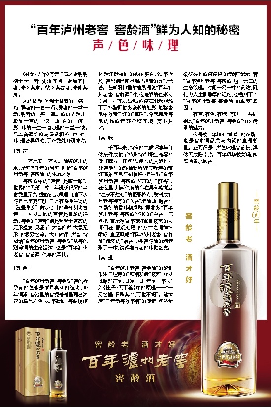 有声,有色,有味,有理——共同组成“百年泸州老窖 窖龄酒”恒久传承的魅力。