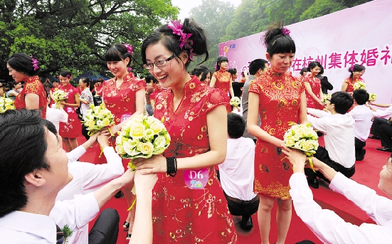 日前,杭州市为50对务工人员举办集体婚礼。 记者 董旭明 摄