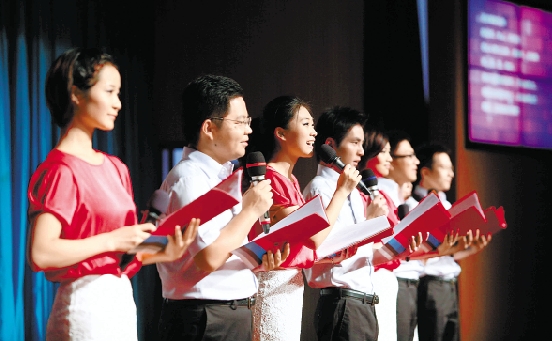 本报讯 由浙江省报业协会主办、省邮政公司协办的“喜迎十八大,颂歌献给党”浙江报人大型诗会,9月6日在杭州举行。我省16家报业集团和报社的代表队朗诵表演了19个参赛节目,参演员工达500多人。 为了向党的十八大献礼,我省报人饱含激情,精心编排,创作了一批热情讴歌报业创新发展、抒发一代报人豪迈心声的新诗篇,这是浙江报业史上第一次大型诗会,也是浙江报人集体谱写的交响诗,充分表达了热爱党、跟党走的坚定信念,也集中展示了昂扬向上的报业风貌和丰富多彩的团队文化。 由浙江日报报业集团选送的《寻找最美的颜色》,获诗歌作品创作一等奖;由浙报传媒集团股份有限公司选送的《写给未来的日记——我们的上市前传》,获诗歌节目表演奖金奖。图为诗朗诵《寻找最美的颜色》。 本报记者 吴新燕 见习记者 魏志阳 通讯员 李选 文/摄 |
