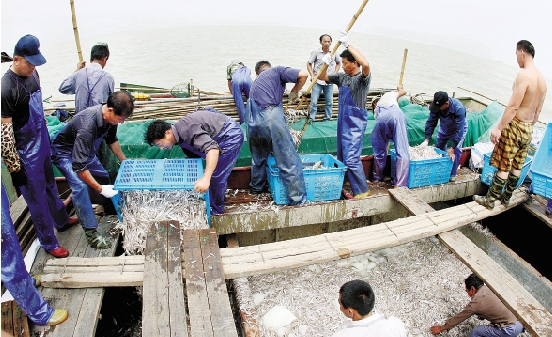 第一网收获3万多斤,渔民们欣喜不已。王晋炎 摄
