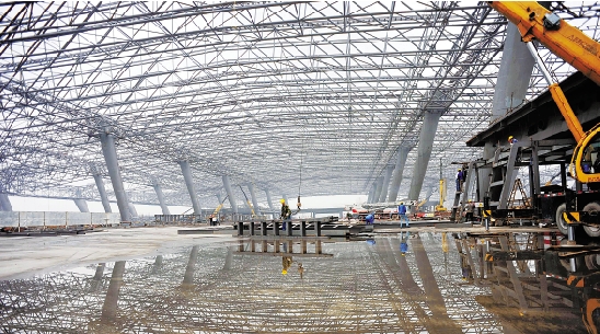 9月6日,杭州火车东站主站房钢结构工程顺利封顶,即将转入全面装修施工阶段。 本报记者 董旭明 摄