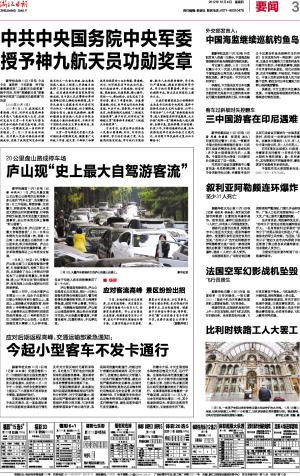 本报社址:杭州市体育场路178号 问询电话:0571-85152101 85310114 邮政编码:310039 电子信箱:zjrb@zjnews.com.cn 广告经营许可证:浙工商广字第0001-1号 印刷:浙江日报报业集团印务中心 昨日本报开印1时35分 印完3时30分