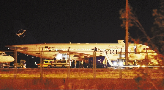 10月10日,一架叙利亚客机被拦截后迫降在土耳其安卡拉机场。 新华社发
