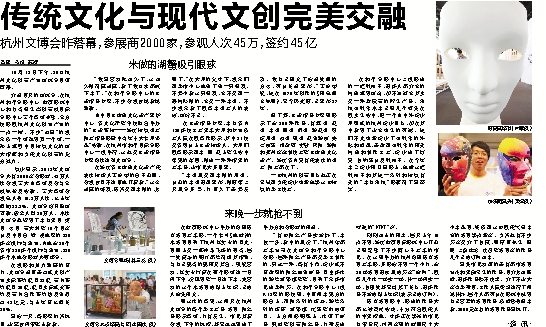 为期四天的博览会,在杭州和平会展中心、世贸展览中心和白马湖生态创意城国际会展中心三个场馆齐集,全方位展现杭州文化创业产业的一点一滴。不少“追星”的观众从一个馆跑到另一个馆,一路上感叹中国传统文化的博大精深和当代文化创意的无穷魅力。