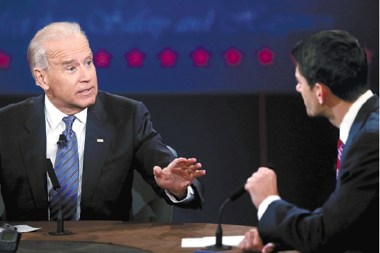 | 10月11日,在美国肯塔基州丹维尔中心学院,民主党籍现任副总统乔·拜登(左)和共和党副总统候选人保罗·瑞安(右)进行副总统候选人辩论。这是两人竞选中的唯一一场面对面交锋。由于今年美国总统竞选选情持续胶着,而3日首场总统候选人辩论使民意调查结果发生不小的波动,冲刺阶段任何一场辩论对竞选双方都相当重要。 新华社发 |
