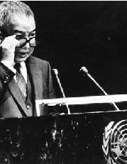 这是1983年10月4日,诺罗敦·西哈努克在联合国大会发言。 新华社发