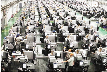 平湖经济开发区的津上精密机床(浙江)有限公司的生产车间内,成片正在安装调试机床。