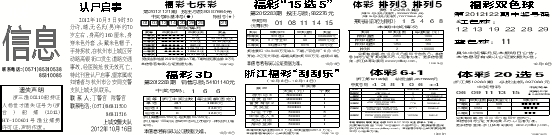 更多信息查询:浙江体育彩票网 www.zjlottery.com。