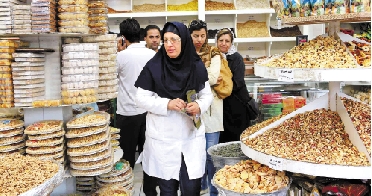 在伊朗首都德黑兰街头,人们在卖当地特产的食品店里选购。新华社发