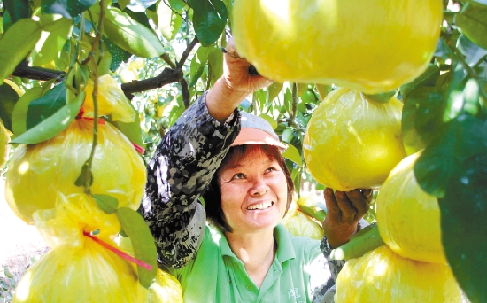 连日来,在玉环县清港镇,果农忙着采摘文旦,投放市场。今年该县文旦坐果率很高,总产量预计近3万吨。