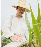 研究所工作人员正在为玉米套授粉袋。 张丹丹 摄