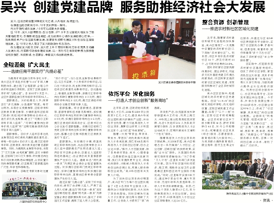 吴兴 创建党建品牌 服务助推经济社会大发展
