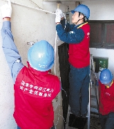 党员服务队队员在布线。