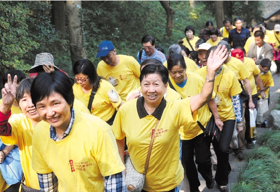 10月21日,杭州市在玉皇山景区举行“牵手父母 重阳登高”温馨祈福活动,200多名市民陪父母长辈同登玉皇顶。