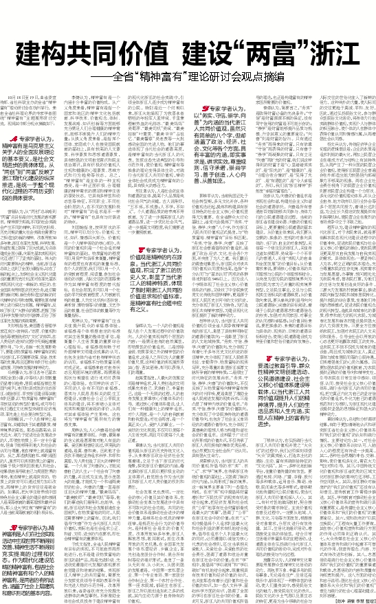 10月18日至19日,由省委宣传部、省社科联主办的全省“精神富有”理论研讨会在杭州举行。来自全省社科理论界的专家学者围绕“精神富有”主题展开研讨交流。现将其中部分观点摘编如下: