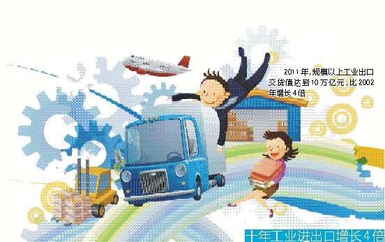 2011年,规模以上工业出口交货值达到10万亿元,比2002年增长4倍