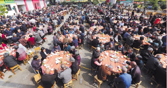10月23日,由爱心人士发起,诸暨陈宅镇绿化村摆上100多桌长寿宴,千余名老人欢聚一堂,共度重阳节。