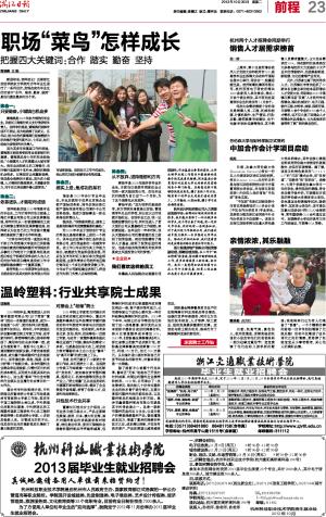 而2008年毕业于该校会计专业的符佳也是踏实勤奋上进的一个例子。其毕业后应聘于浙江圣邦实业有限公司,成为资金部的一名融资专员。在工作三年后因为其工作能力突出,被提拔为资金部经理助理,而后仅仅半年时间又被任命为资金部副经理,主要负责该公司杭州地区银行每年近6个多亿的融资贷款工作,今年由于公司新组建业务部门,符佳还作为部门负责人回母校招聘。