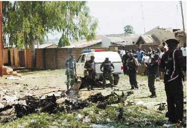 10月28日,在尼日利亚北部卡杜纳州,士兵在发生袭击事件的教堂附近执勤。 新华社发