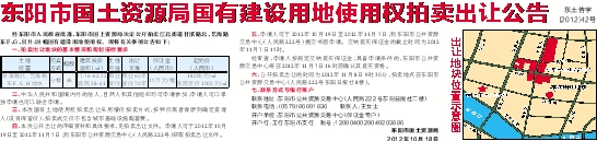 六、公开拍卖出让的时间为2012年11月8日9时30分,拍卖地点在东阳市公共资源交易中心(人民路222号东阳日报社8楼)。
