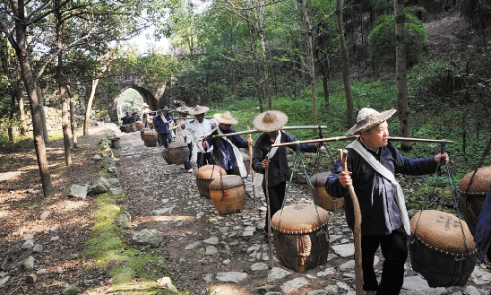 11月3日,江山市保安乡举行农民运动会,数百名选手在仙霞古道上举行负重比赛。 黄水福 摄