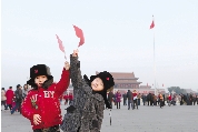 11月7日,6岁的刘泽涛(右)和5岁的袁明熙在天安门广场合影。