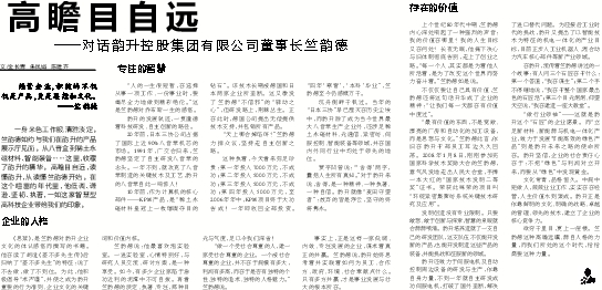 贾平凹曾说:“‘舍得’两字,囊括人生所有真知。”对于韵升来说,舍得,是一种精神、一种执著、一种自信。韵升就像“麦田守望者”:放弃的皆是浮云,坚守的终将隽永。