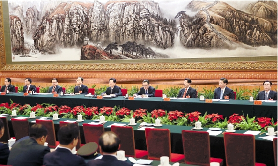 11月7日,中国共产党第十八次全国代表大会主席团在北京人民大会堂举行第一次会议。 新华社记者 兰红光 摄