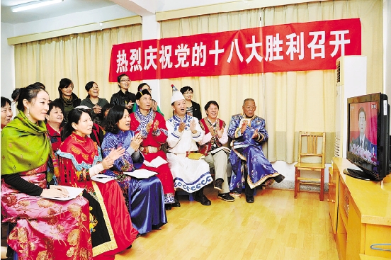 宁波北仑区新碶街道的少数民族同胞观看开幕盛况。 金旭孟 陈红 吴晓鹏 摄