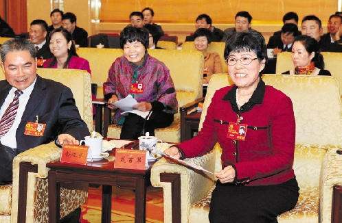 11月9日,党的十八大浙江代表团讨论十八大报告。图为冯亚丽代表在发言。