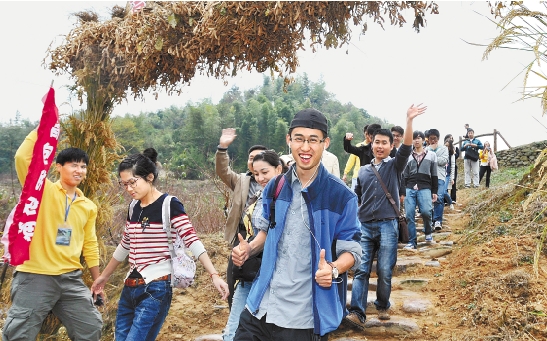 十八大报告鼓舞了人们建设生态文明的信心。图为户外运动爱好者漫步奉化市大堰镇的古道。 吴晓鹏 吴培维 毛节常 摄