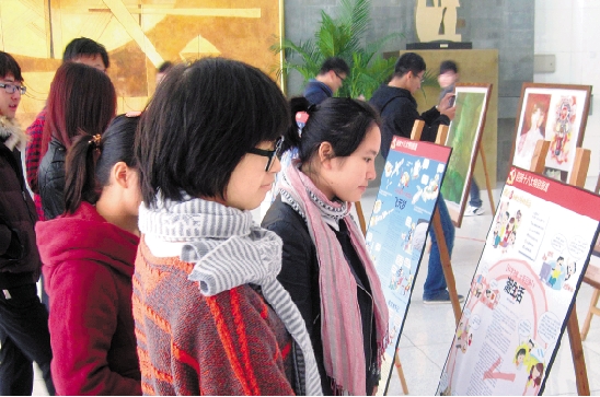 浙江工业大学艺术学院十周年庆科研成果汇报展近日在浙江工业大学屏峰校区开幕,展览内容包括“喜庆十八大主题连环漫画”、“动漫插画”以及“环艺设计”等。