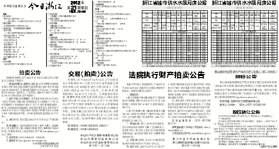 受嘉兴市中级人民法院委托,于2012年11月29日14时30分在嘉兴市白云假日酒店举行拍卖会。现将有关事项公告如下: