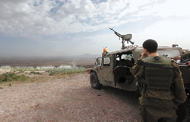 11月6日,一名以色列士兵在叙利亚边界附近的戈兰高地观察迫击炮弹的烟雾。 视野网供图