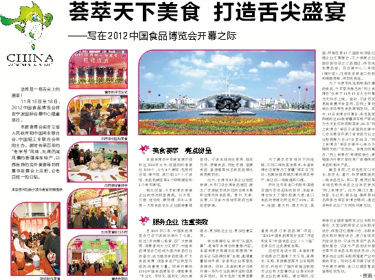 11月15日至18日,2012中国食品博览会将在宁波国际会展中心隆重举行。