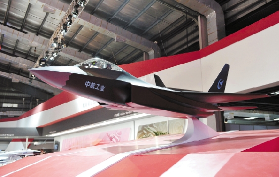 这是中航工业展厅内展出的新型战机模型(11月12日摄)。 新华社记者 杨光 摄