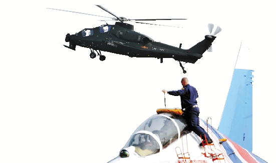 11月13日,武直-10武装直升机在珠海航展现场进行低空飞行展示。