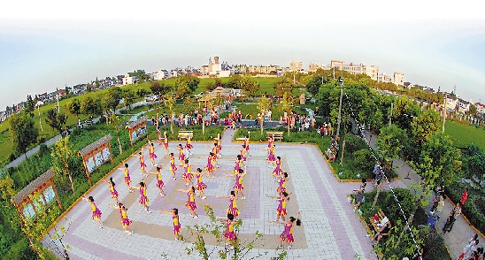 妈妈宝贝在新建广场练习舞蹈。洪溪 摄