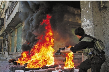 11月13日,在叙利亚阿勒颇,一名反对派武装人员在射击。当日,叙利亚政府军与反对派武装在首都大马士革及其郊区、北部阿勒颇省和伊德利卜省等多地进行激烈交战。 新华社发