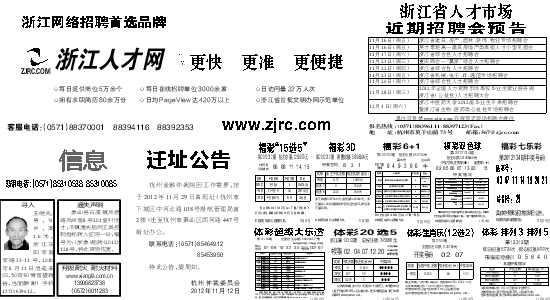 | 11月28日(周三) | 2012年全国人力资源市场高校毕业生就业服务周 浙江省(公益性)人才招聘大会 |