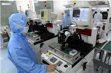 11月16日,德清华莹电子有限公司员工在生产声表滤波器。该企业痛下决心淘汰老产品,投入上千万元引进国外新设备,改造新工艺,对产品实行转型升级。 记者 吴元峰 通讯员 宣宏 摄