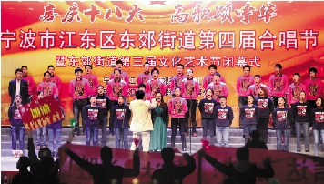 11月17日晚,宁波江东区东郊街道举办合唱节,抒发对党的热爱之情,唱出对未来的美好祝愿。 胡建华 傅红兵 汤霁 摄