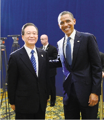 11月20日,温家宝在金边会见奥巴马。 新华社记者 马占成 摄