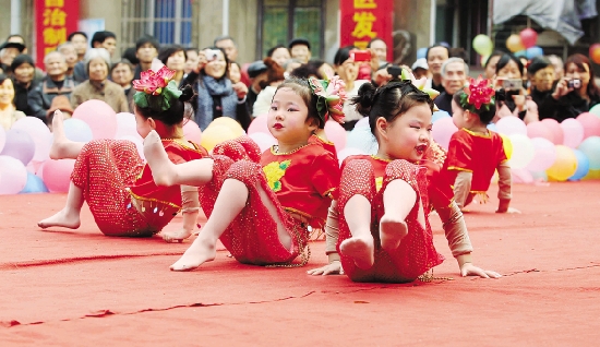 11月20日,杭州新颜苑社区民族文化活动拉开帷幕。丰富多彩的节目抒发了居民对祖国的无限热爱。图为孩子们舞蹈表演。