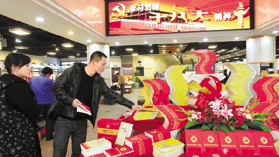 11月20日,新华书店杭州庆春路购书中心,读者在十八大专题书柜选购十八大报告等读物。