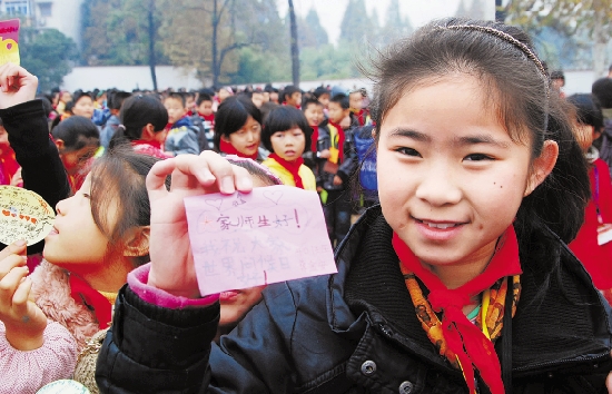 11月20日,建德市寿昌第二小学开展“轻轻的问候 甜甜的祝福”感恩主题教育活动。 宁文武 摄